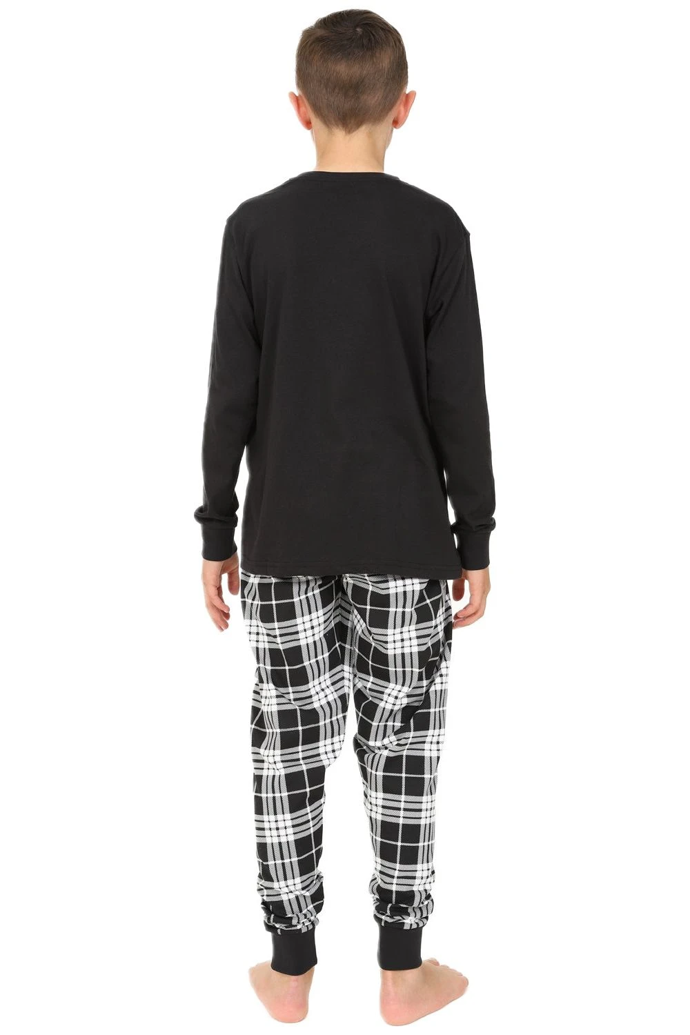 This 100% cotton Long Sleeved Top and matching cuffed Woven Cotton bottoms. Elasticated matching black & white woven check long bottoms Pjs. Superb quality and insanely comfortable!