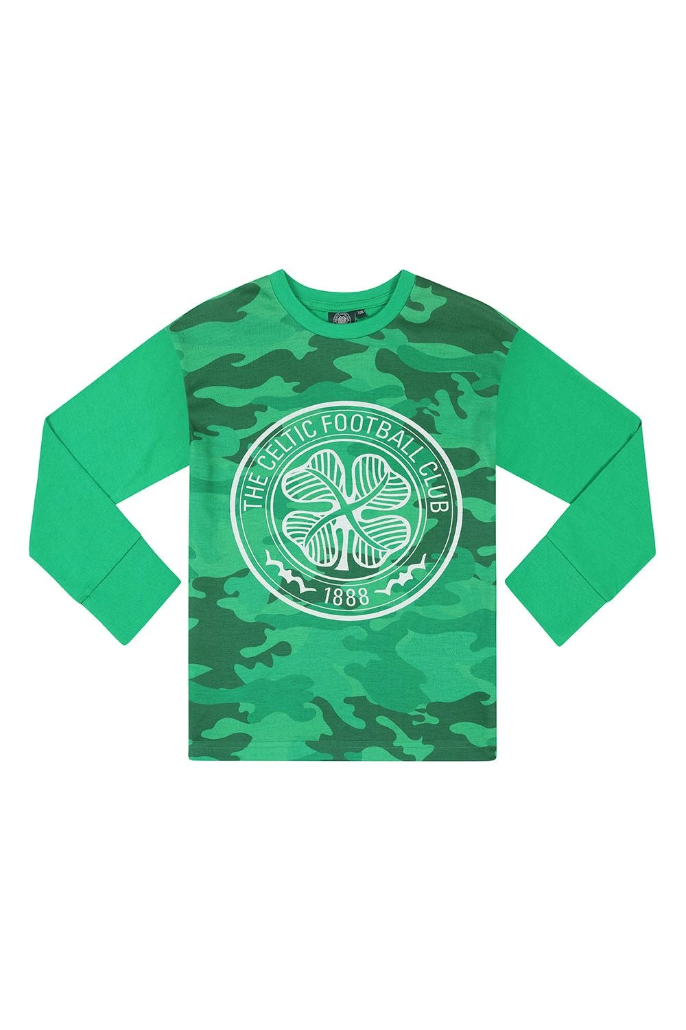 Celtic Football Club Boys Long Pyjamas. These come with a long sleeve pyjama top with a camouflage print, Celtic crest on the chest and pants with an elasticated waist. These cool pyjamas would make fantastic gift for any Celtic fan.