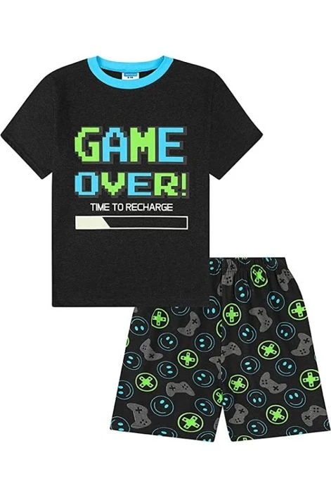 Send your gamers off bed with these cool “Game Over” glow in the dark short Boys Gaming pyjama set.Â