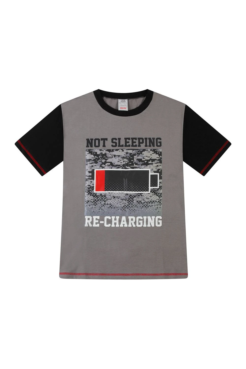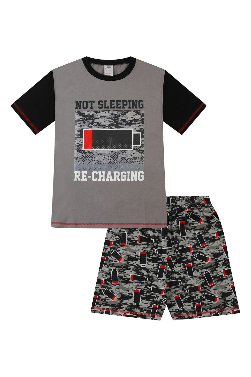 Boys Not Sleeping I’m Just Recharging’ Grey Red Short Pyjamas