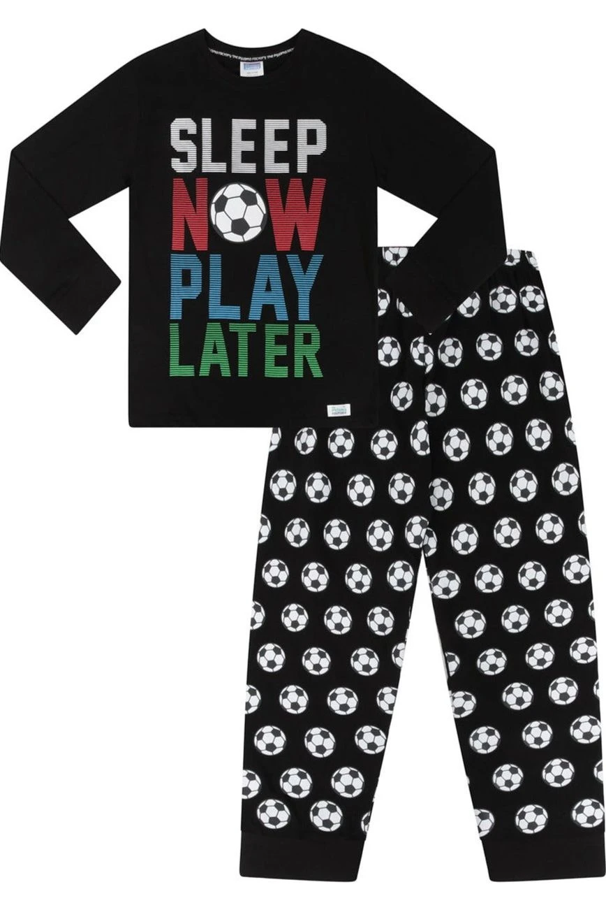 The perfect Pyjama for your little fan! Sleep Now PLay Later in this super comfy pyjama set that will be a firm favourite in his pyjama drawer. Featuring a long sleeved top with matching elasticated short bottoms.