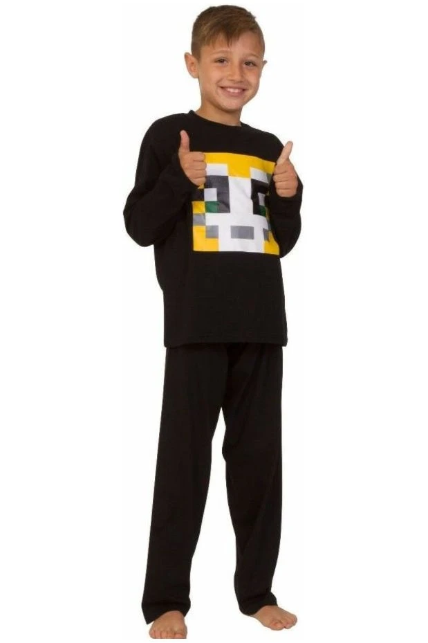 Do not miss these YouTube sensation Stampy Long Nose Pyjamas. Stampylongnose, Stampylonghead, Stampy Cat, call him what you will, but all we know is that this super cool pyjama set is perfect for all Minecraft PJ fans. Features a long sleeved top with pixel Stampy Cat graphic and matching elasticated bottoms.