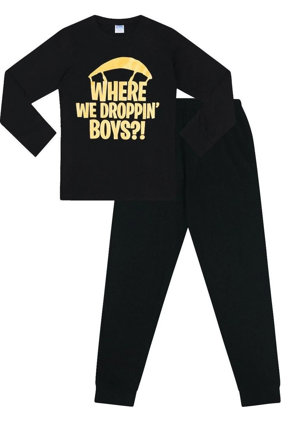 Illuminate your gamers with this “Where we droppin boys ” Long pyjama set.