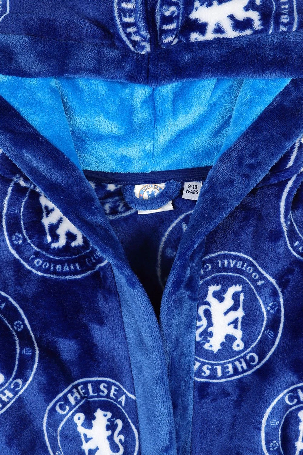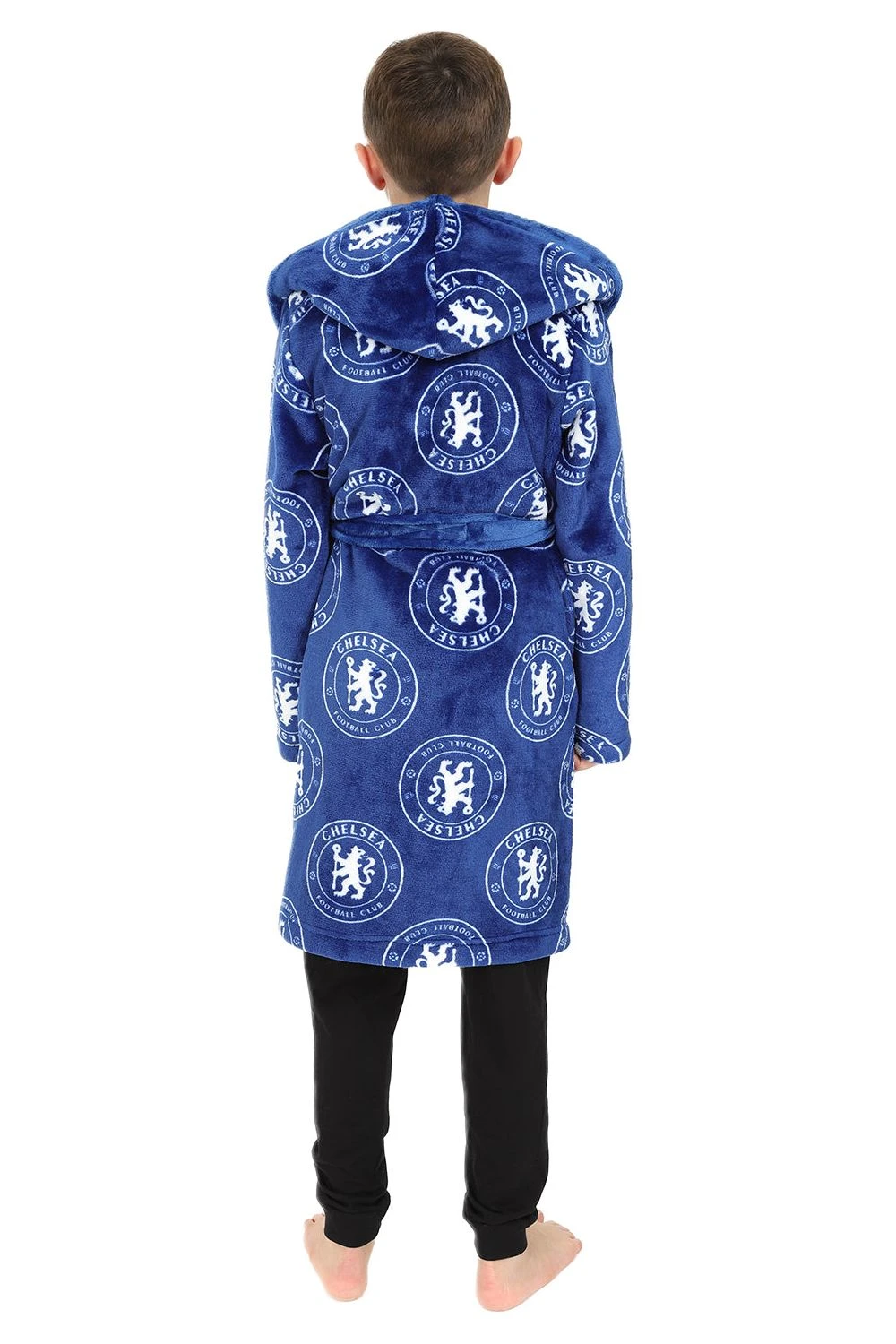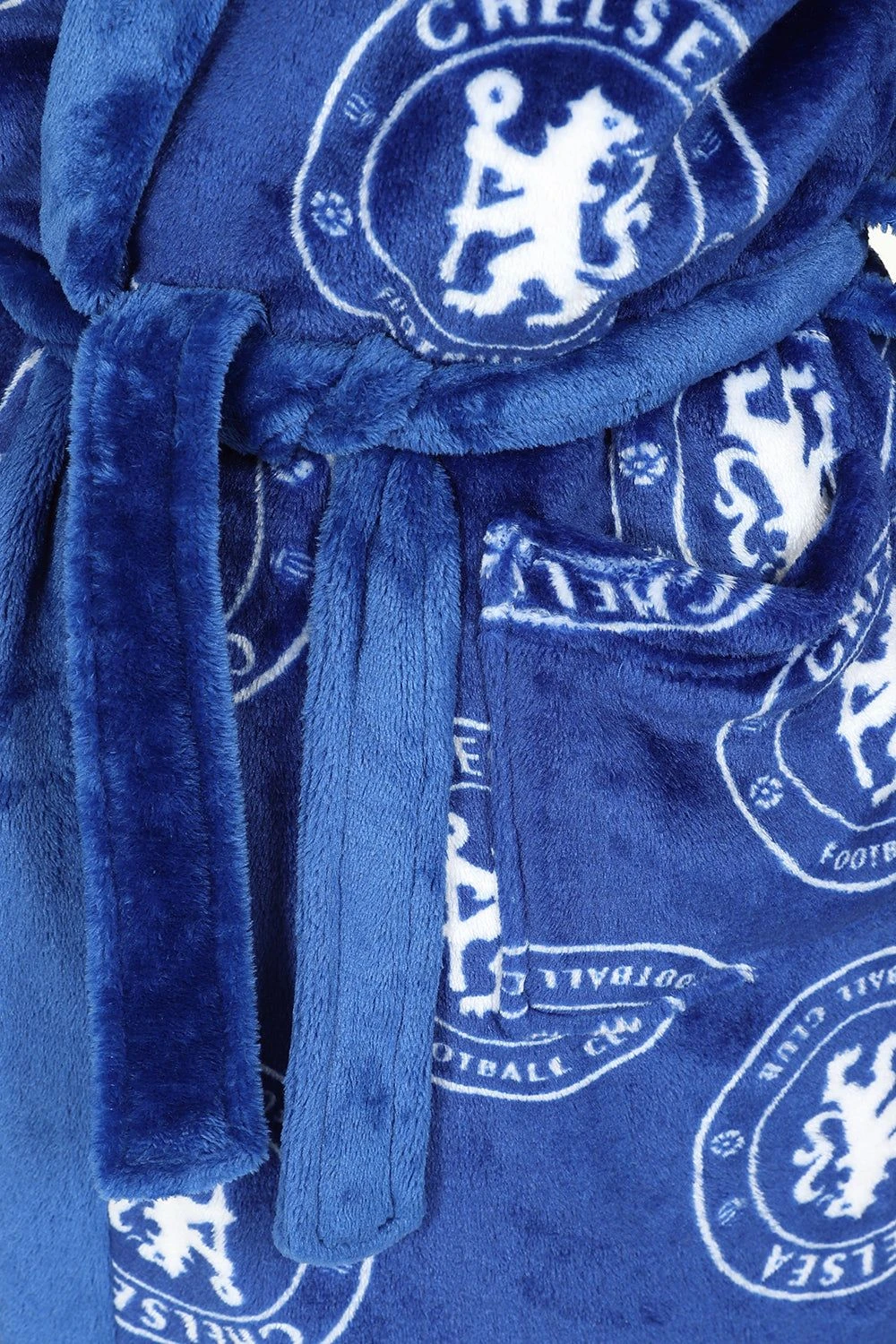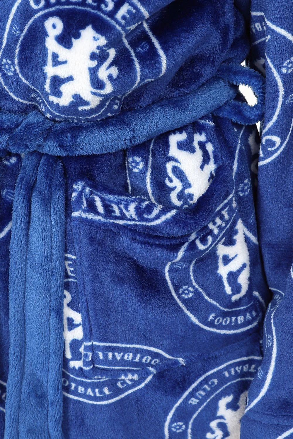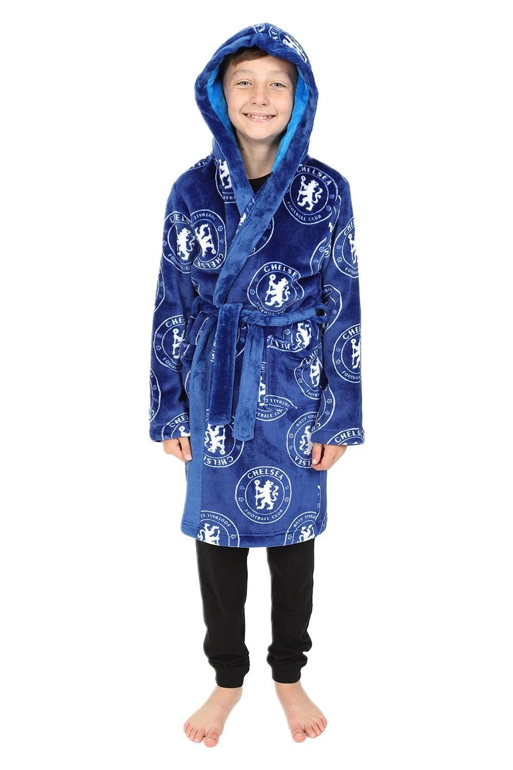 . This Luxury boys hooded dressing gown comes in a super soft fleece material with an all over Chelsea crest print. This robe would make an Ideal gift for any young Chelsea fan