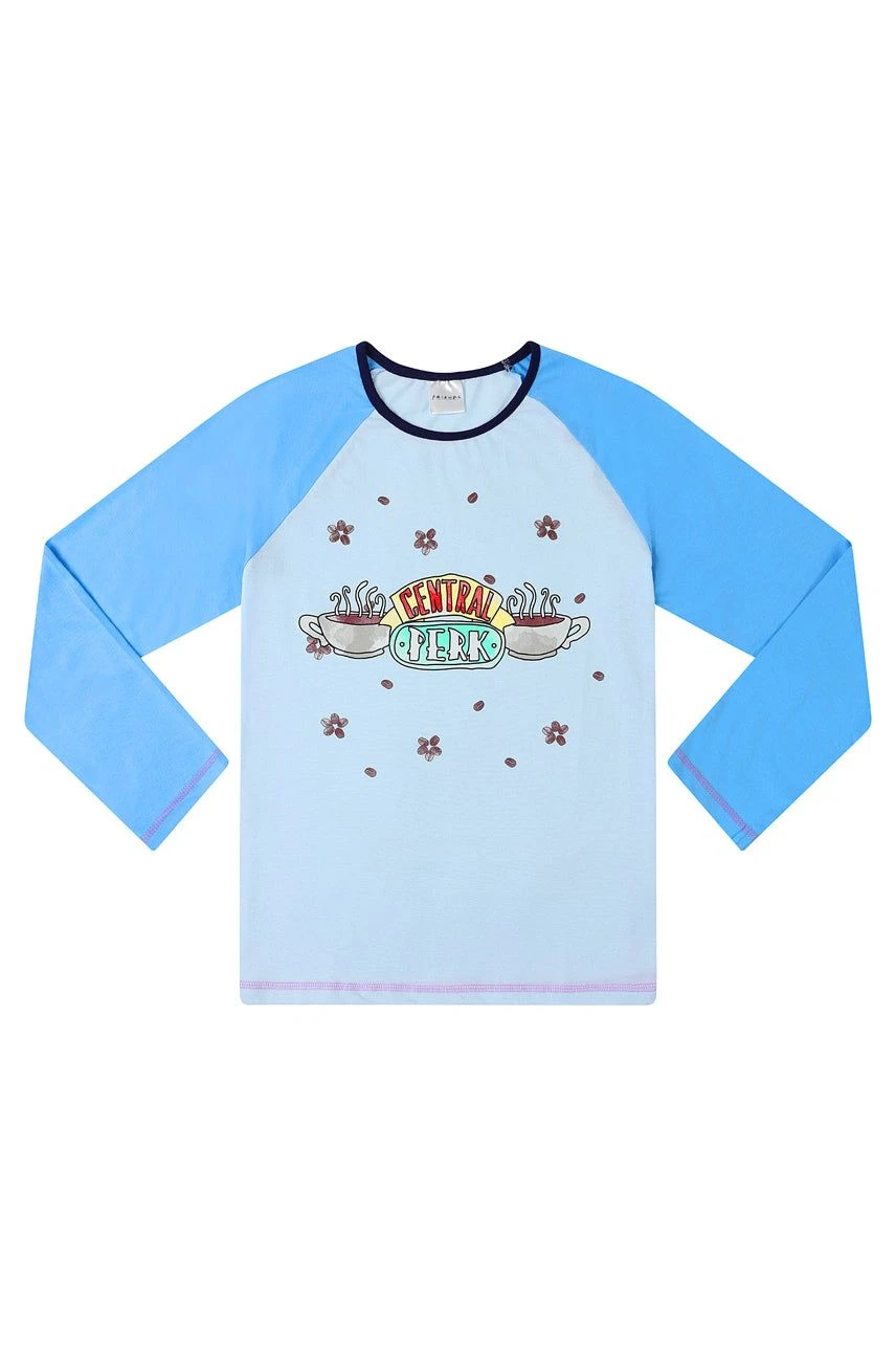 Lovely quality girls pyjama set. This set includes a long sleeved top featuring a Central perk logo with matching bottoms.