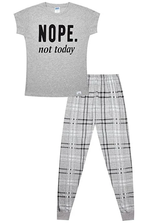 Girls Cheeky Nope Not Today Checked Long Cotton Pyjamas