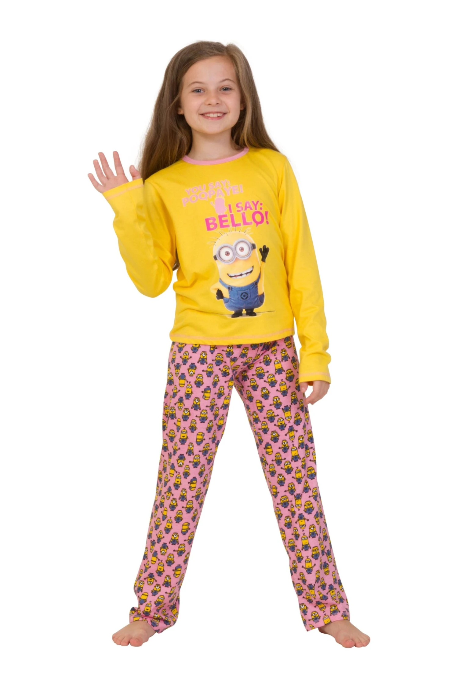 with a cheeky “When You Say Poopaye” print on a bright pink long sleeved top with contrasting yellow elasticated bottoms. Sure to be a firm favourite in her pyjama drawer!