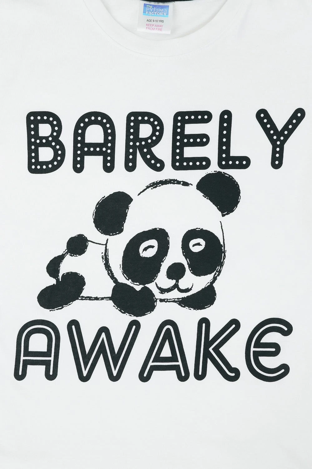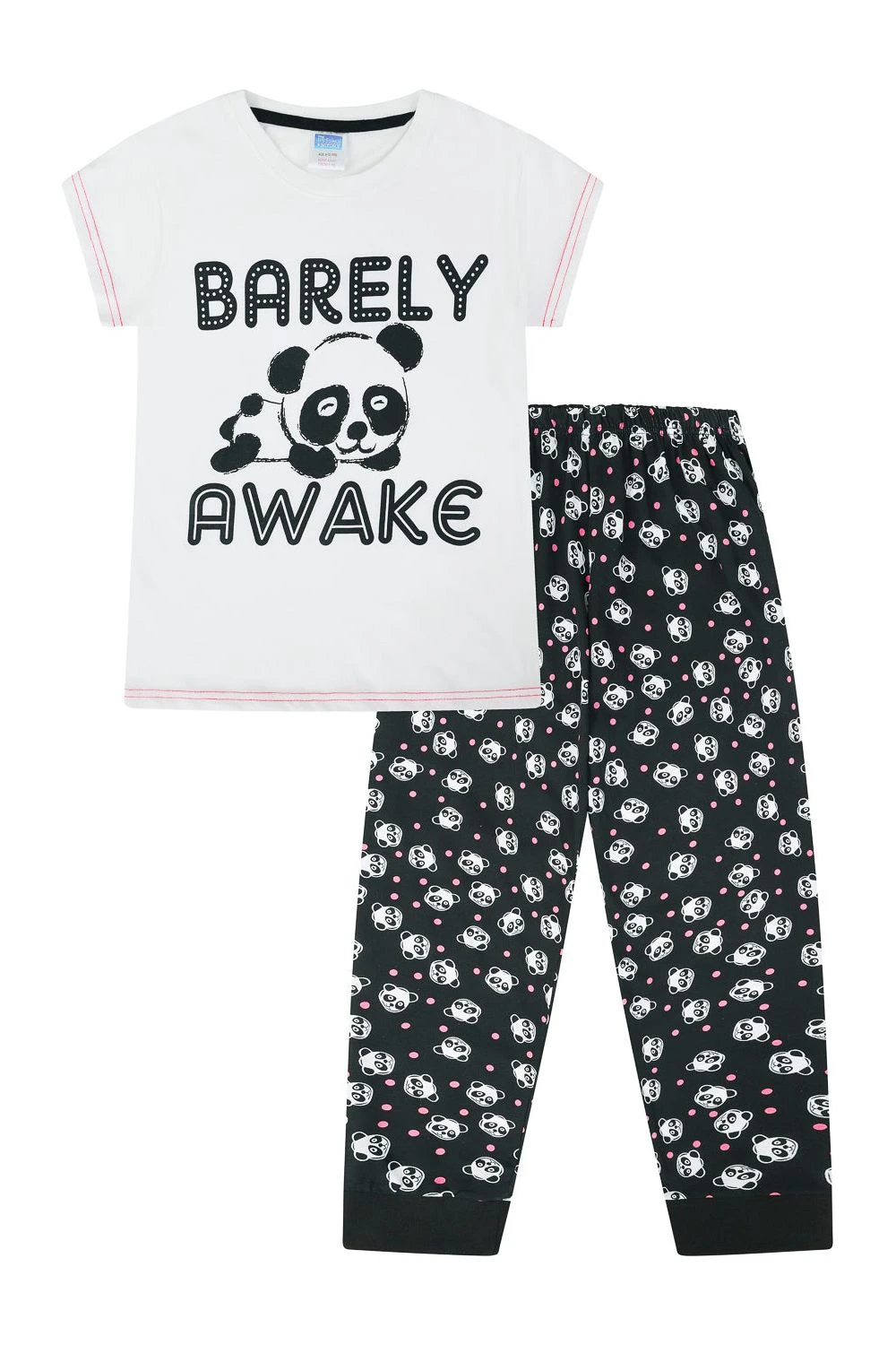 Cheeky girls pyjama set with a “Barely Awake” slogan printed across the front with an adorable Panda. This paw-some set is complete with matching elasticated long bottoms and is sure to be a firm favourite in her pyjama drawer.