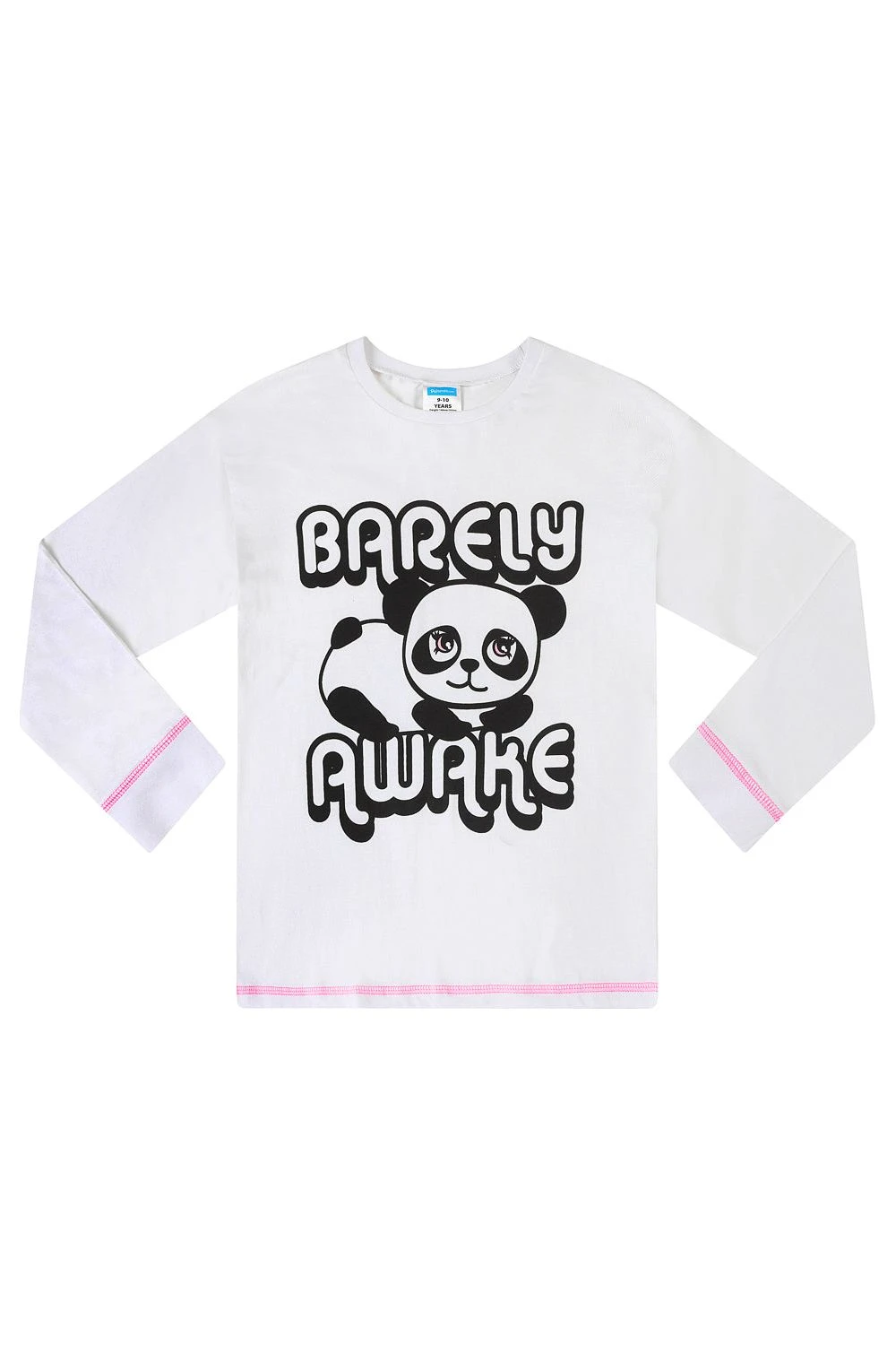 Cheeky girls pyjama set with a “Barely Awake” slogan printed across the front with an adorable Panda. This paw-some set is complete with matching elasticated long bottoms and is sure to be a firm favourite in her pyjama drawer.
