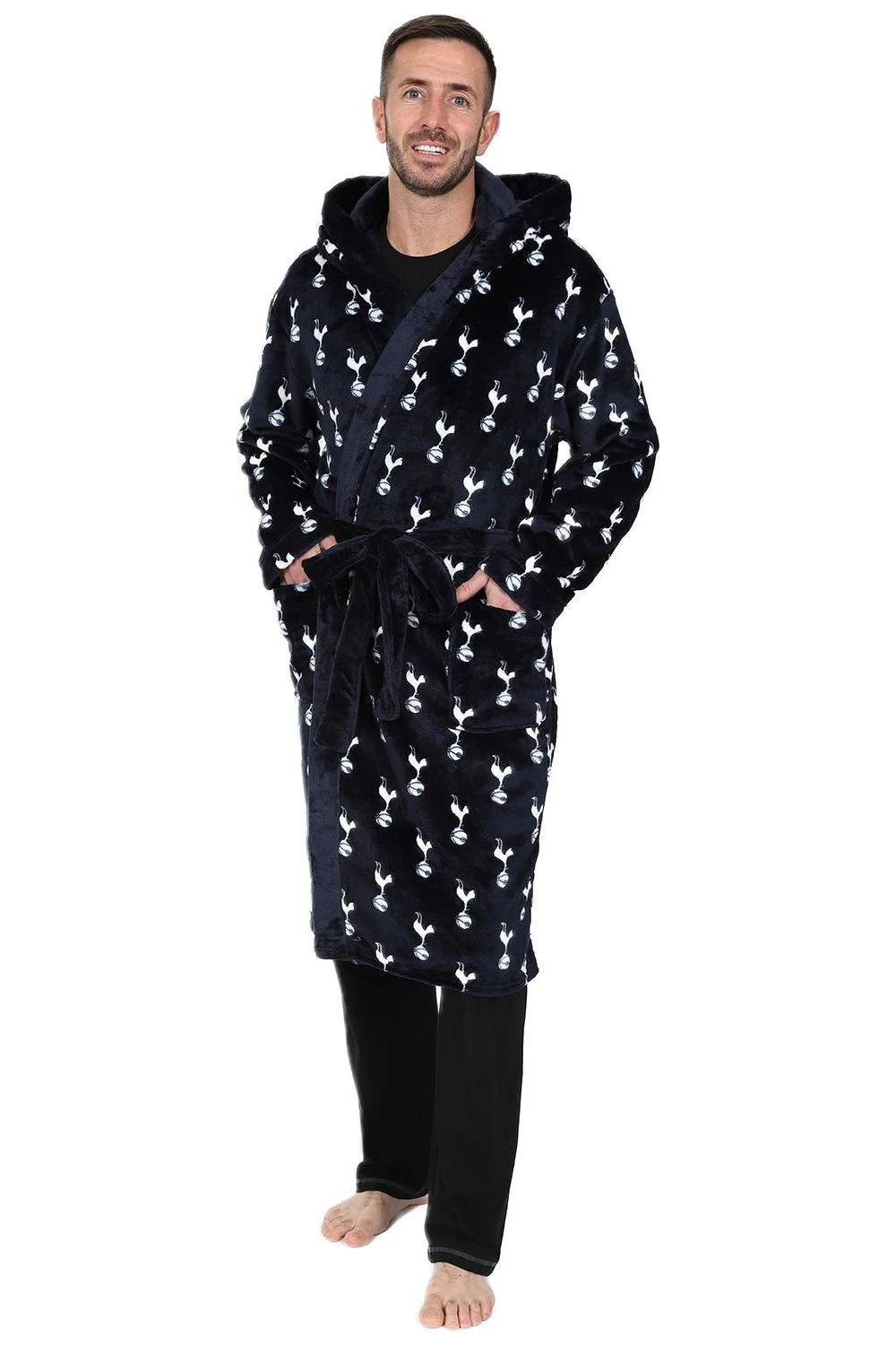. This Luxury mens hooded dressing gown comes in a super soft fleece material with an all over crest print. This robe would make an Ideal gift for any Spurs fan