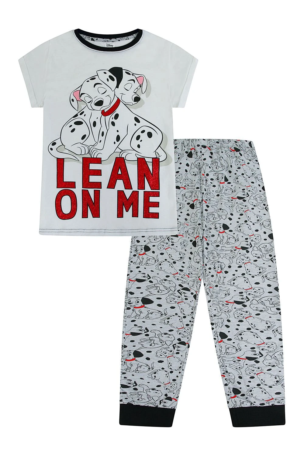 . This set includes a short sleeved top featuring 101 Dalmatians with matching print bottoms.