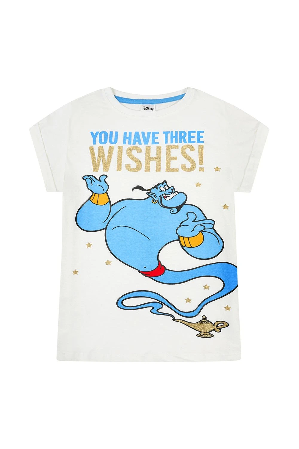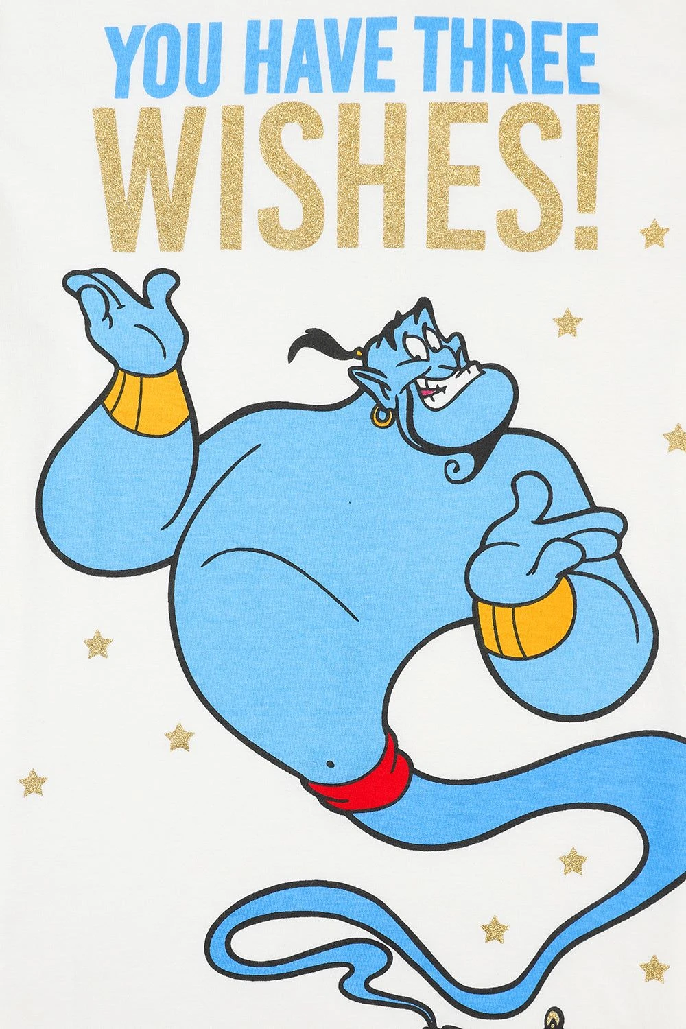 with Aladdin Genie ‘You Have Three Wishes’ design. This set includes a short sleeved top with matching print bottoms.