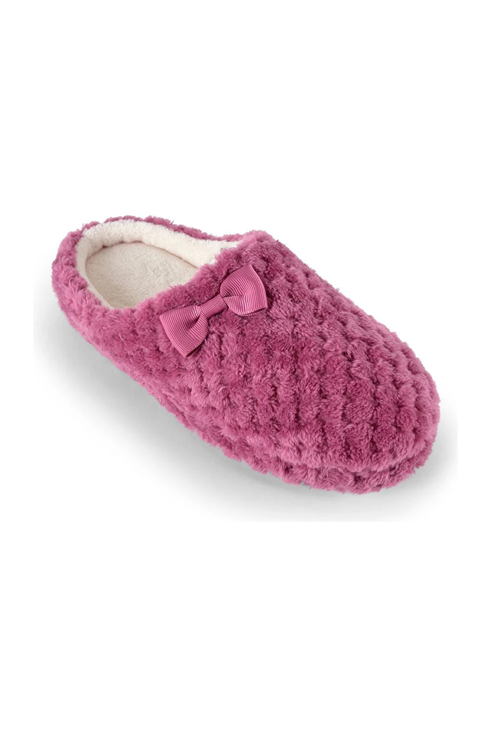 Women’s Pink Waffle Effect Fabric Mule Slippers