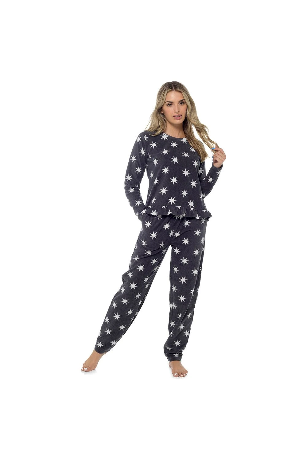 Ladies Star Print Fleece Twosie with Ruffle Hem Top in Navy